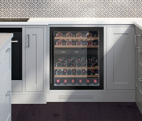 En inbyggbar vinkyl installeras ofta under bänkskivan i ett kök alternativt i ett högskåp. Vi erbjuder inbyggbara vinkylar med en bredd från 15 cm till 60 cm från flera olika varumärken. Vi har även ett stort sortiment av vinkylar med olika dörrhöjder som är anpassade utefter de största kökskedjornas mått. Vi vill att din vinkyl ska matcha resten av ditt kök och det gör du enklast genom att se till att din vinkylsdörr har samma höjd som dina köksluckor. Är du osäker på vilken vinkyl som bäst passar ditt kök? Kontakta oss gärna! Till skillnad från en fristående vinkyl kan den inbyggbara vinkylen installeras utan att ta hänsyn till utrymme runt omkring sig. Ventilationen på en inbyggbar vinkyl sker genom en sockel framtill och det är därför viktigt att denna inte täcks för! Är du osäker på hur du ska installera din inbyggbara vinkyl? Läs gärna vår installationsguide om hur du bygger in din inbyggbara vinkyl.