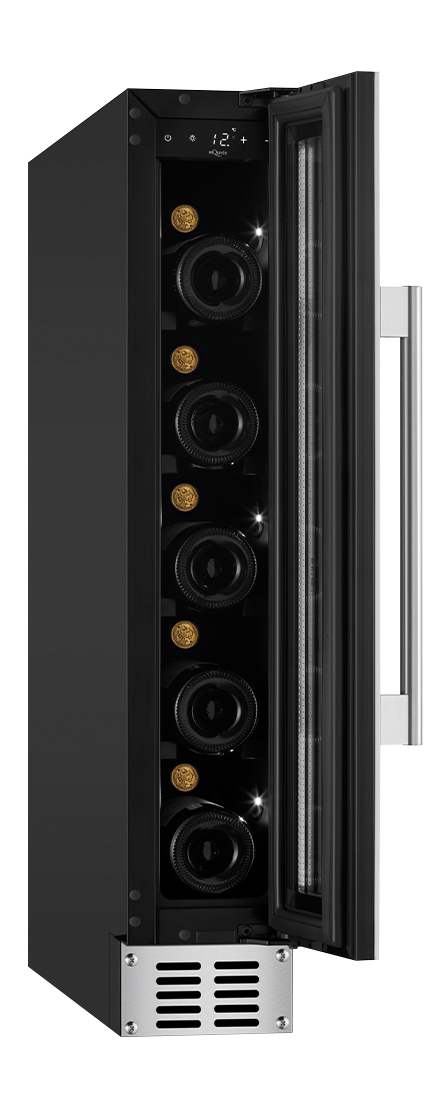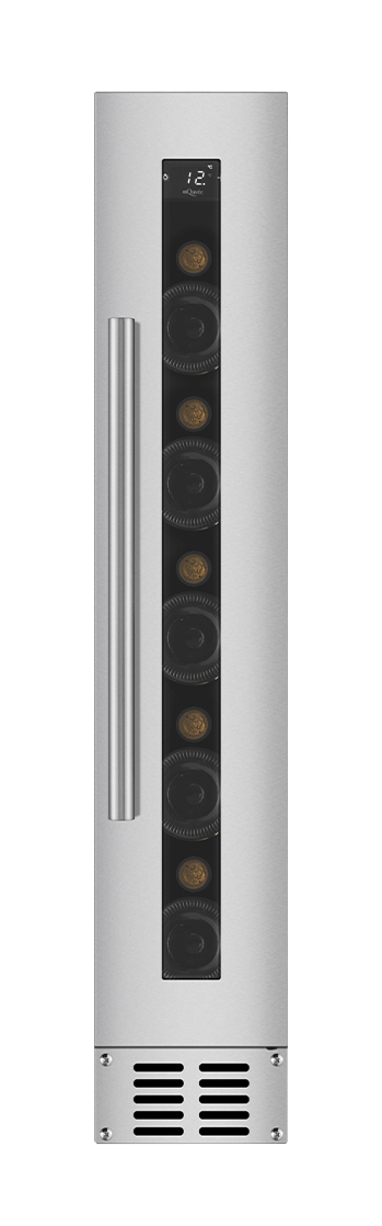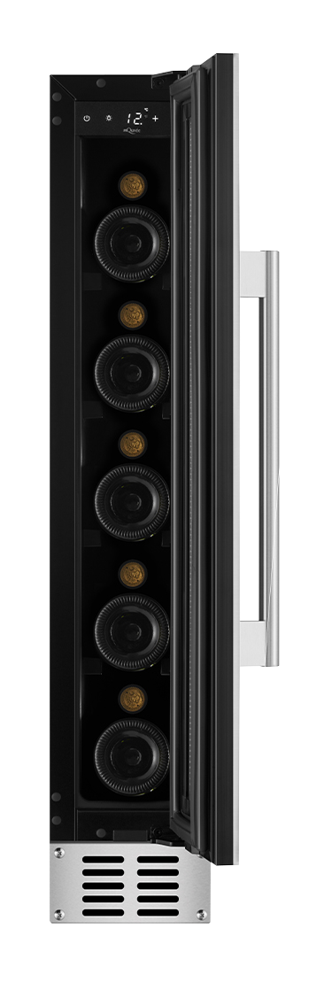 Mindre inbyggbar vinkyl med plats till 7 flaskor från mQuvée. Vinkylen kan enkelt byggas in under köksbänken och är perfekt för dig med mindre plats. Med stilren rostfri design och dörr utan skarvar lyfter denna vinkyl ditt kök!