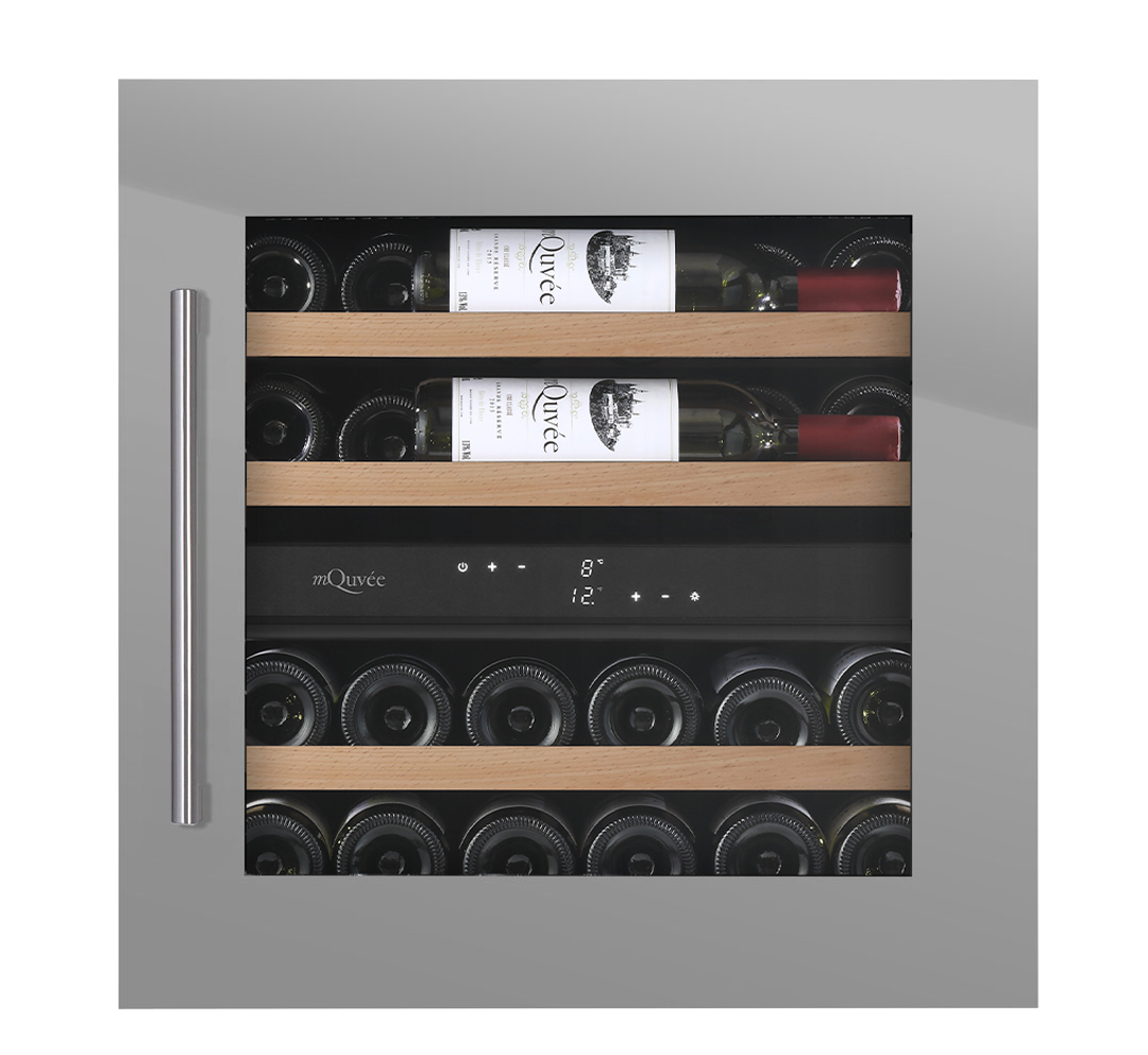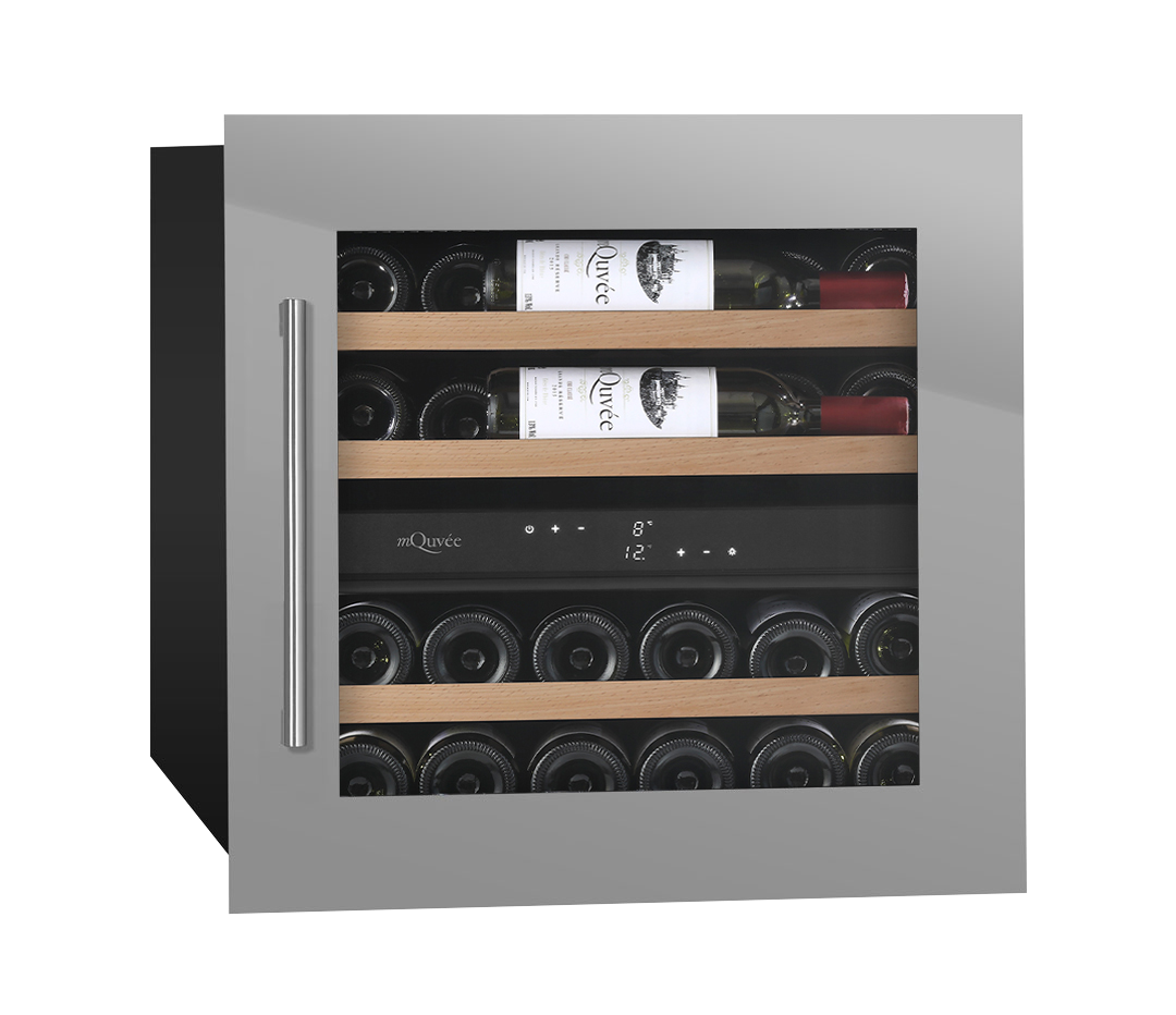 Integrerbar och rostfri vinkyl - perfekt för det moderna hemmet! Denna vinkyl från mQuvée har plats till 25 flaskor som snyggt fördelas på kylens 3 utdragbara hyllor i trä. Vinkylen går enkelt att bygga in i resten av köksmiljön, på samma sätt som en inbyggbar ugn. Denna vinkyl är dessutom tystlåten och har energiklass F.
