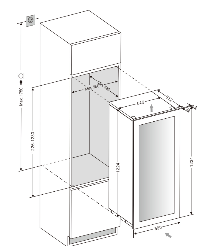 mQuvée Integrerbar vinkyl - WineKeeper 70D Stainless (B: 59 x H: 123,4 x D: 55,9 cm)