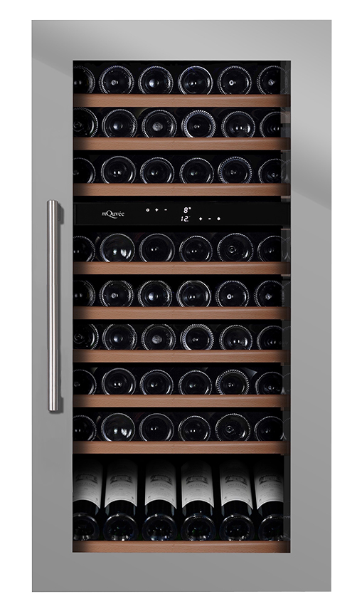 Stilren integrerbar vinkyl med rostfri finish som rymmer 78 flaskor. Denna vinkyl från mQuvée har två justerbara temperaturzoner och 8 utdragbara trähyllor - perfekt för att kyla både rött och vitt vin i.