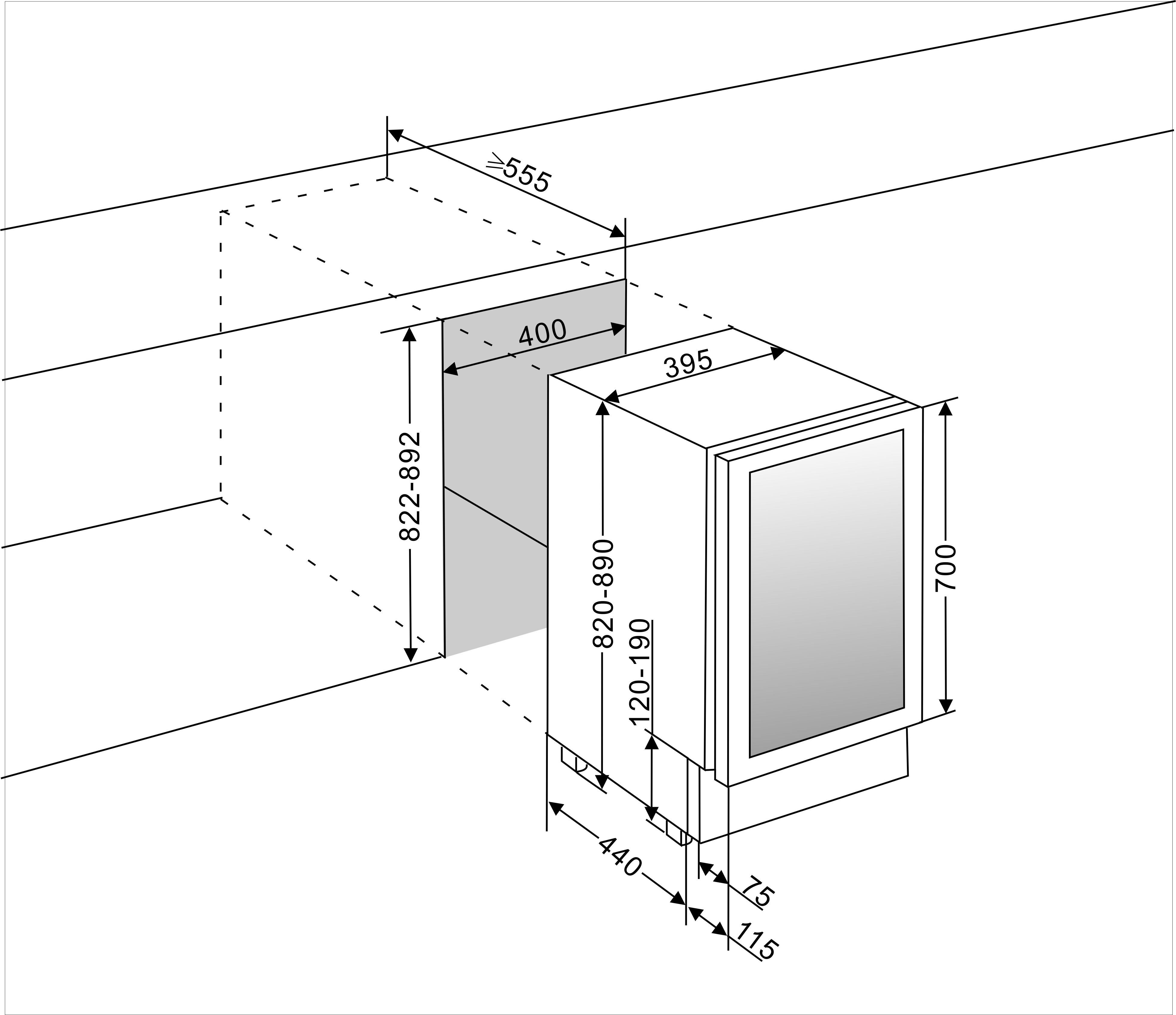 mQuvée Inbyggbar vinkyl - WineCave 700 40D Anthracite Black (B: 39,5 x H: 82/89 x D: 57 cm)