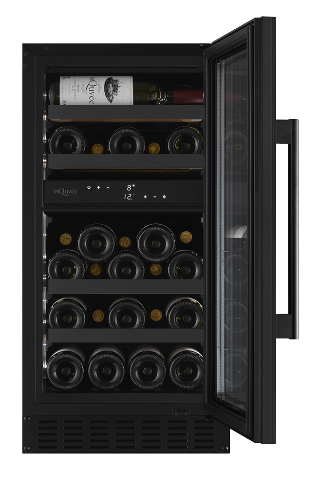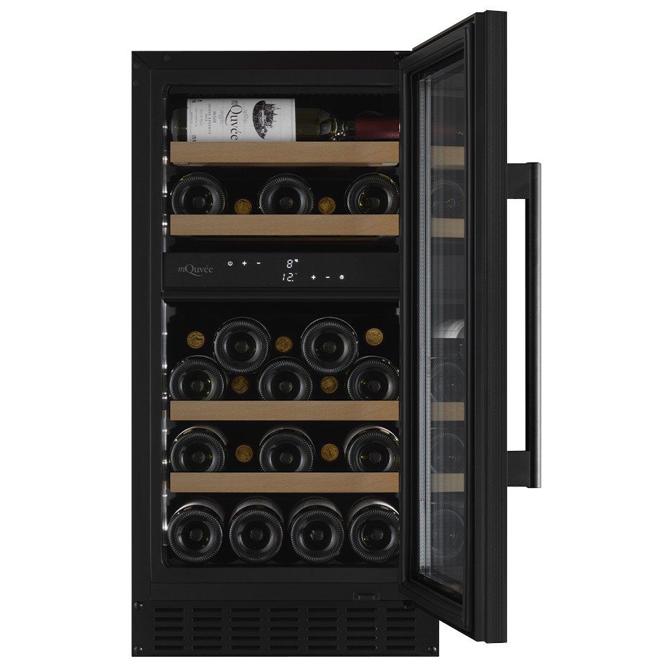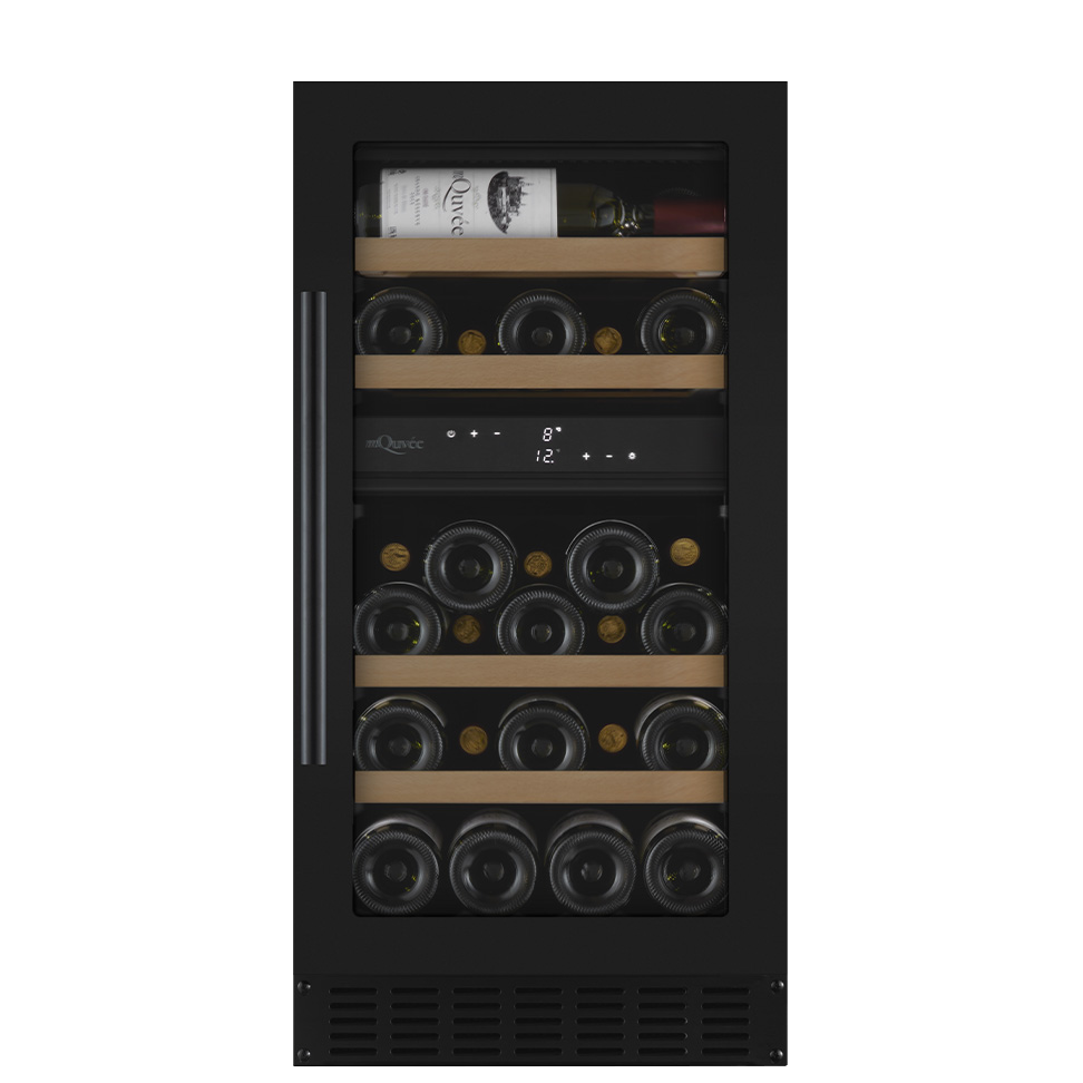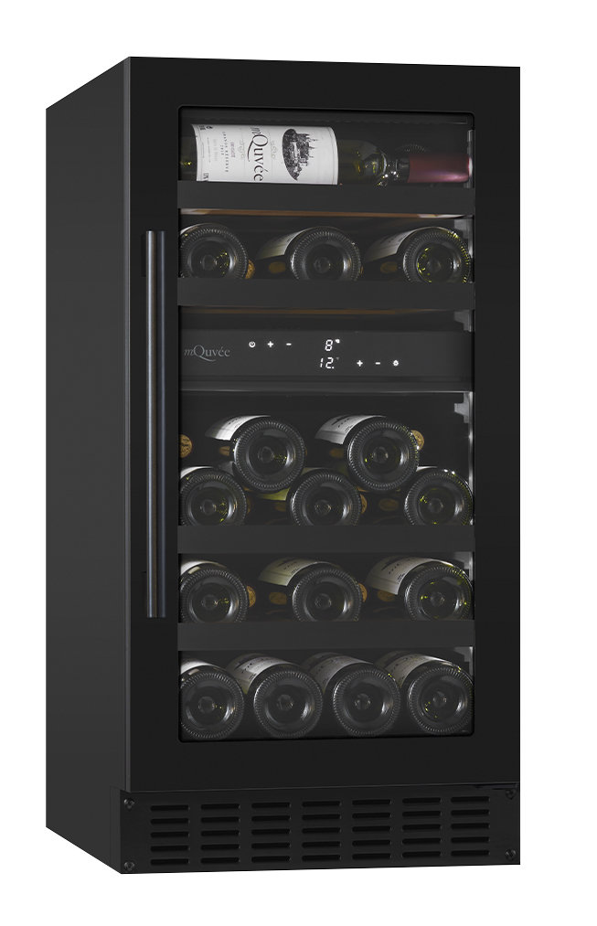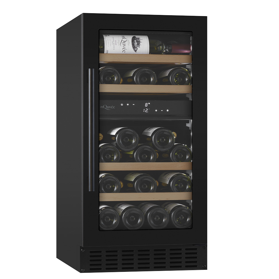 En läcker vinkyl från mQuvée som med sin höjd på 82/89 cm och bredd på 40 cm passar in på den skandinaviska marknaden. Vinkylen kan enkelt byggas in under köksbänken eller användas som fristående. Med mattsvart design, två temperaturzoner och med en seamless-door (dörr utan skarvar) ger detta dig en vinkyl med ett stilrent intryck. Vinkylen har 5 utdragbara trähyllor och plats till 28 flaskor.