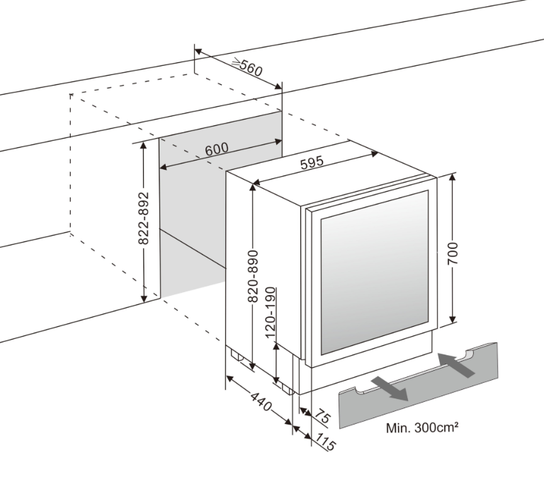 mQuvée Inbyggbar vinkyl - WineCave 700 60D Anthracite Black (B: 59,5 x H: 82/89 x D: 55,5 cm)