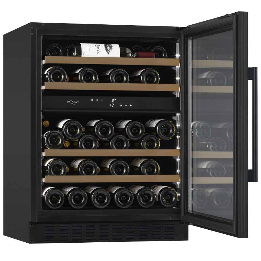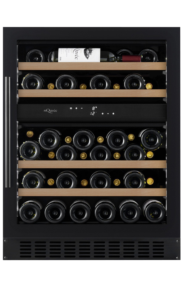 Snygg inbyggbar vinkyl från mQuvée som kommer med en unik dörr som har en höjd på 700 mm - för att passa in i det skandinaviska hemmet. Vinkylen går enkelt att bygga in under köksbänken och kan även användas som fristående. Med stilren mattsvart design, två temperaturzoner och en dörr utan skarvar får du en vinkyl som lyfter hela ditt kök. Vinkylen har energiklass F, kolfilter, 4 utdragbara trähyllor och plats till 45 flaskor.