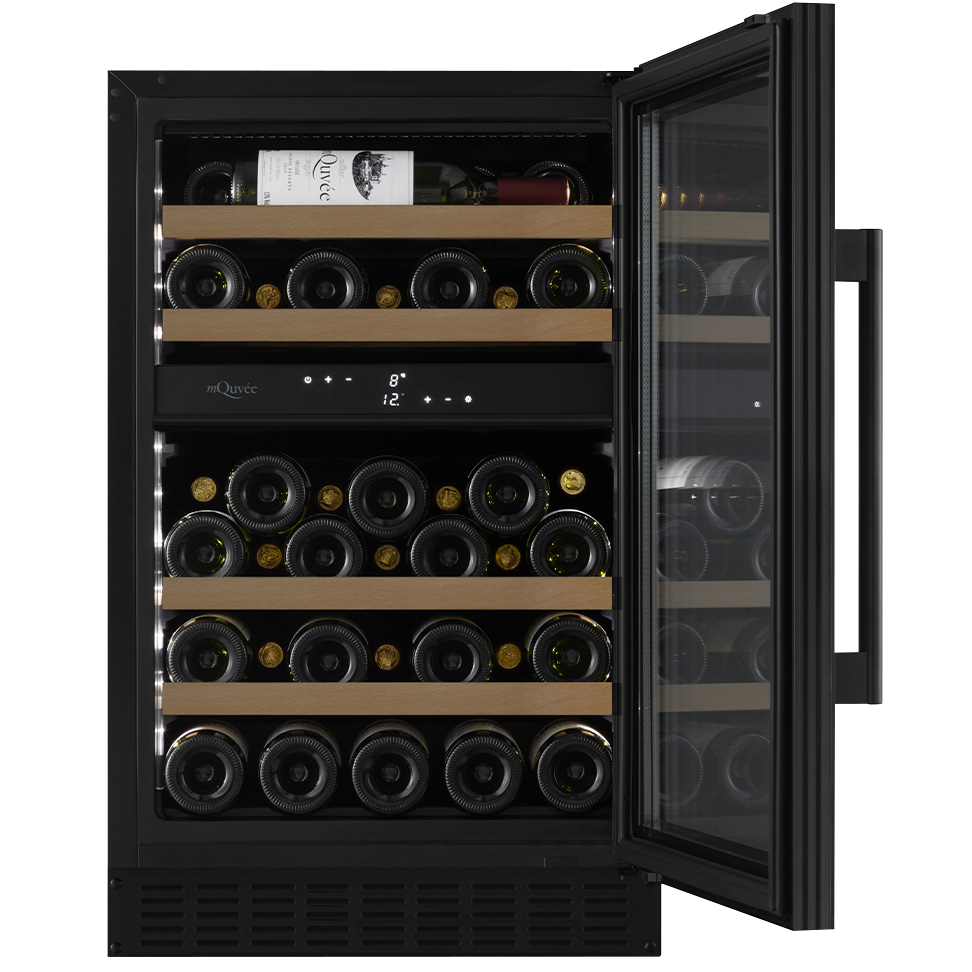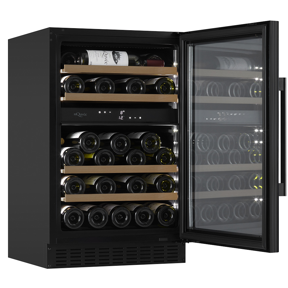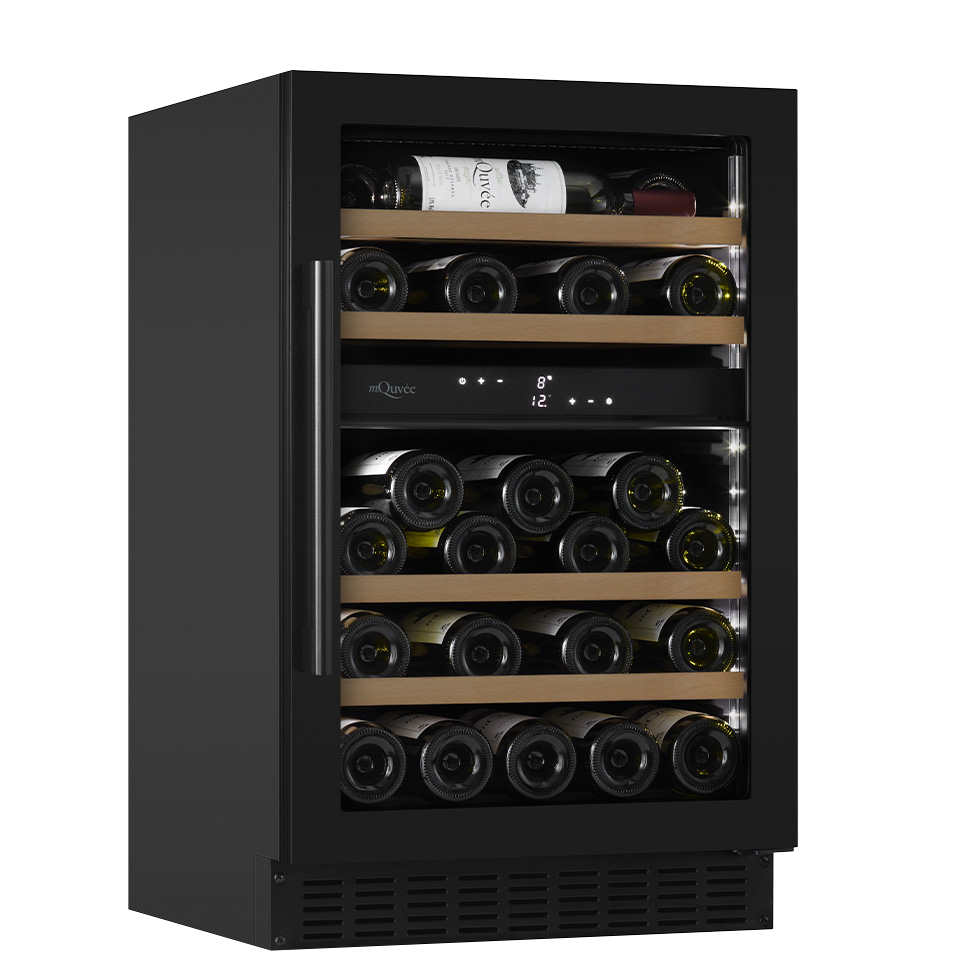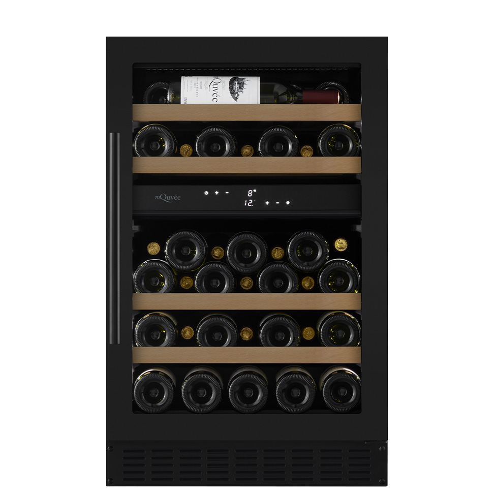 En tidlös mattsvart vinkyl från mQuvée som med sin bredd på 50 cm gör den helt unik på marknaden. Utmärkt att bygga in under köksbänken eller varför inte ha den som en fristående vinkyl. Med dess stilrena utseende och klassiska trähyllor får du en läcker detalj i ditt hem. Placera dina vinflaskor i kylen och förvara dem med stil!