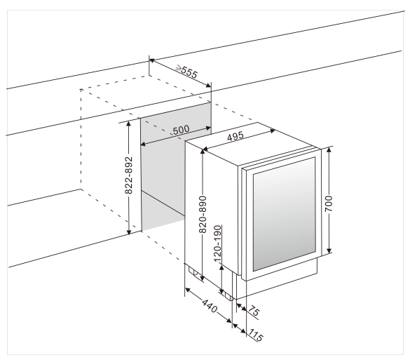 mQuvée Inbyggbar vinkyl - WineCave 700 50D Modern (B: 49,5 x H: 82/89 x D: 57 cm)