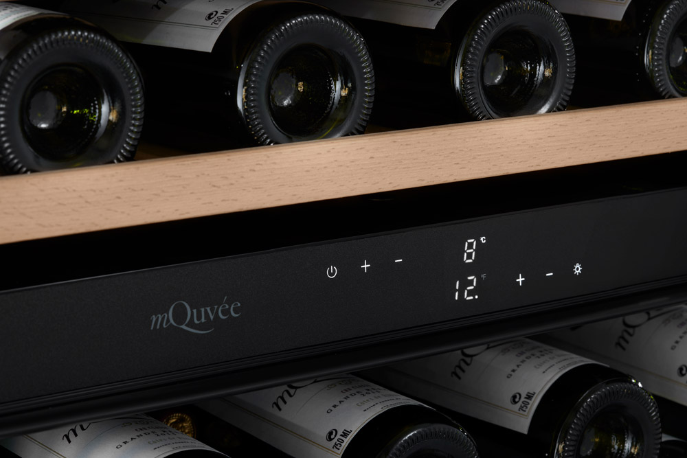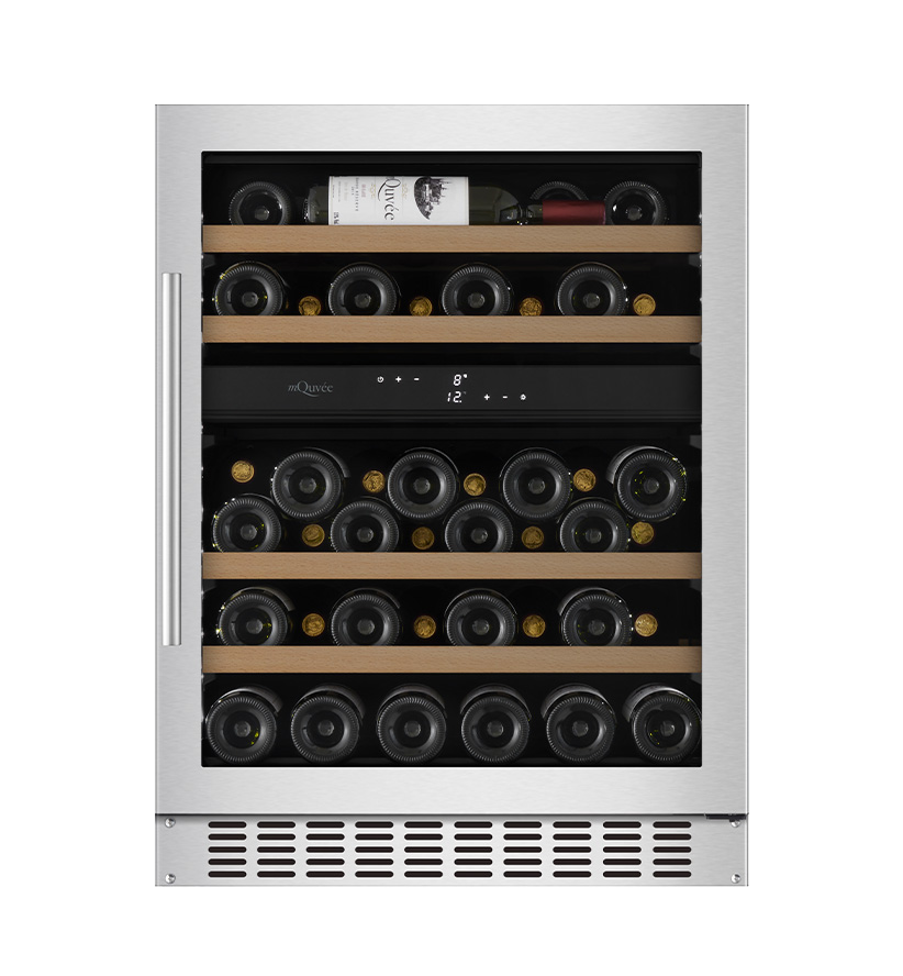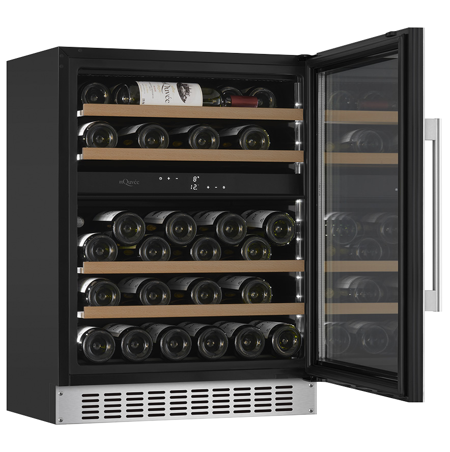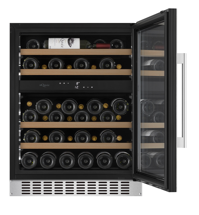 Snygg inbyggbar vinkyl från mQuvée som kommer med en unik dörr som har en höjd på 700 mm - för att passa in i det skandinaviska hemmet. Vinkylen går enkelt att bygga in under köksbänken och kan även användas som fristående. Med stilren rostfri design, två temperaturzoner och en dörr utan skarvar får du en vinkyl som lyfter hela ditt kök. Vinkylen har energiklass F, kolfilter, 4 utdragbara trähyllor och plats till 45 flaskor.
