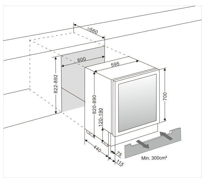 mQuvée Inbyggbar vinkyl - WineCave 700 60D Stainless (B: 59,5 x H: 82/89 x D: 55,5 cm)