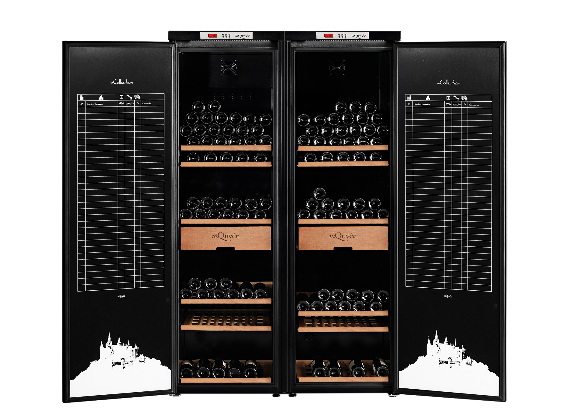 Exklusivt från mQuvée, ett Europatillverkat vinlagringsskåp med plats till 474 flaskor. Ett pampigt vinlagringsskåp med unika möjligheter såsom reglerbar fuktighet, exlusiva trähyllor med 2 lådor och detaljerat vinförvaringsark. Detta skåp är ihop monterat och har två solida dörrar. Justera temperaturen, placera flaskorna och låt skåpet stå för lagringen av ditt vin!
