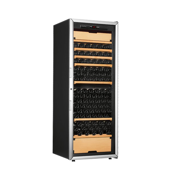 Multifunktionslagringsskåp från franska Artevino. Lagra vin och förvara serveringsklart rött & vitt vin - i samma skåp! Detta multifunktionsskåp har plats till 199 flaskor och kommer med en låsbar glasdörr. Multiskåpet levereras med 3 lagringshyllor i trä och 3 avgränsade fack för serveringsklara viner.