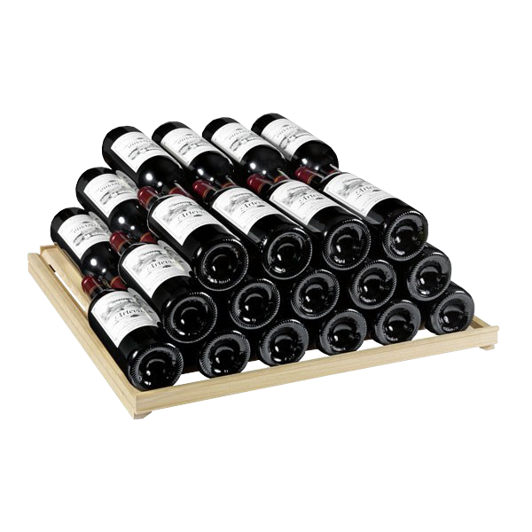 • 3 lagringshyllor i trä och 2 avgränsade fack för serveringsklara viner