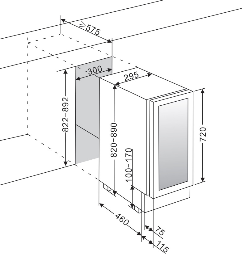 mQuvée Inbyggbar vinkyl - WineCave 30D Powder White (B: 29,5 x H: 82/89 x D: 57 cm)