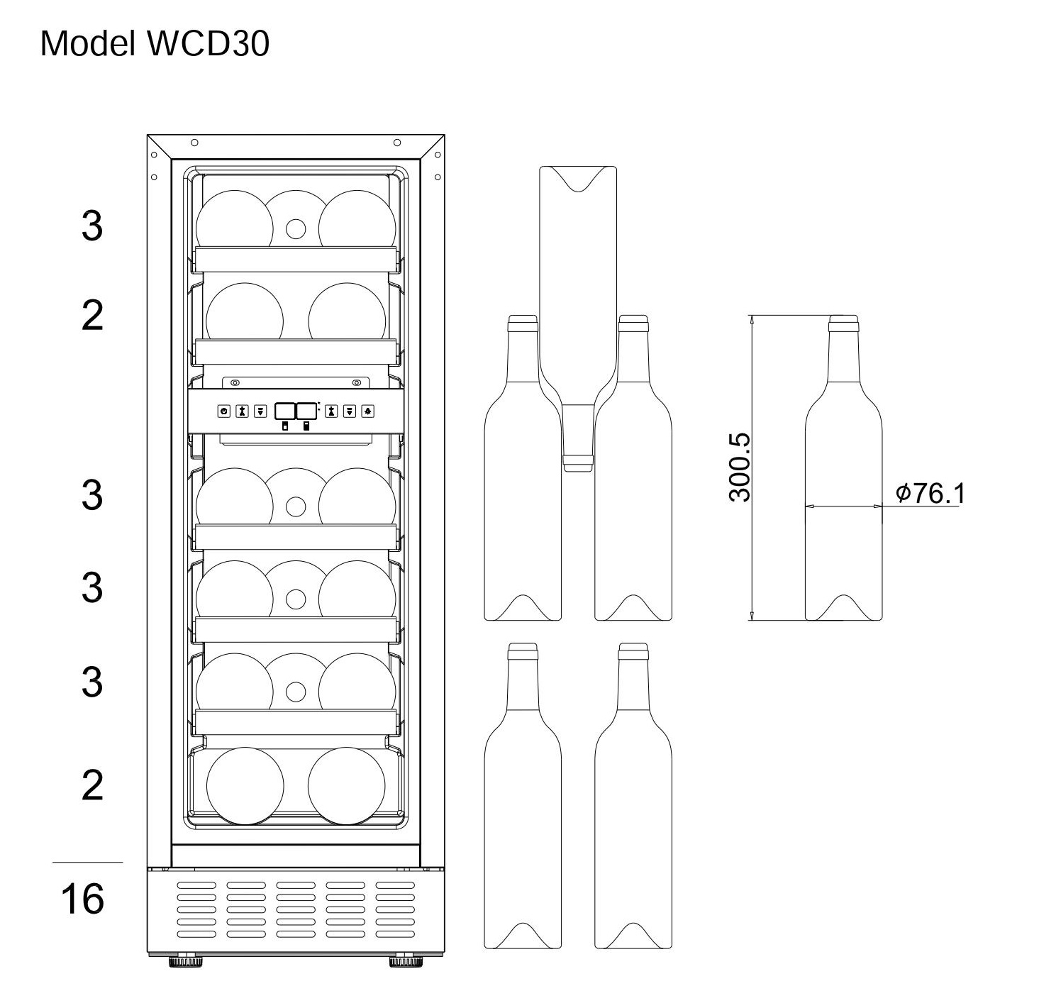• Plats för 16 flaskor