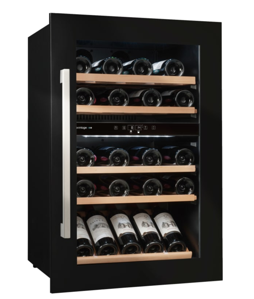 Ska det bli riktigt snyggt i köket, är det en helt integrerbar vinkyl ni ska ha från Climadiffs premiumvarumärke, Avintage. Framförallt för er som bygger nytt. Här får ni hela vinkylen integrerad med resten av köksmiljön, precis som en inbyggbar ugn. Denna svarta vinkyl har 2 zoner och 4 utdragbara trähyllor samt 1 presentationshylla. Plats för 52 flaskor.
