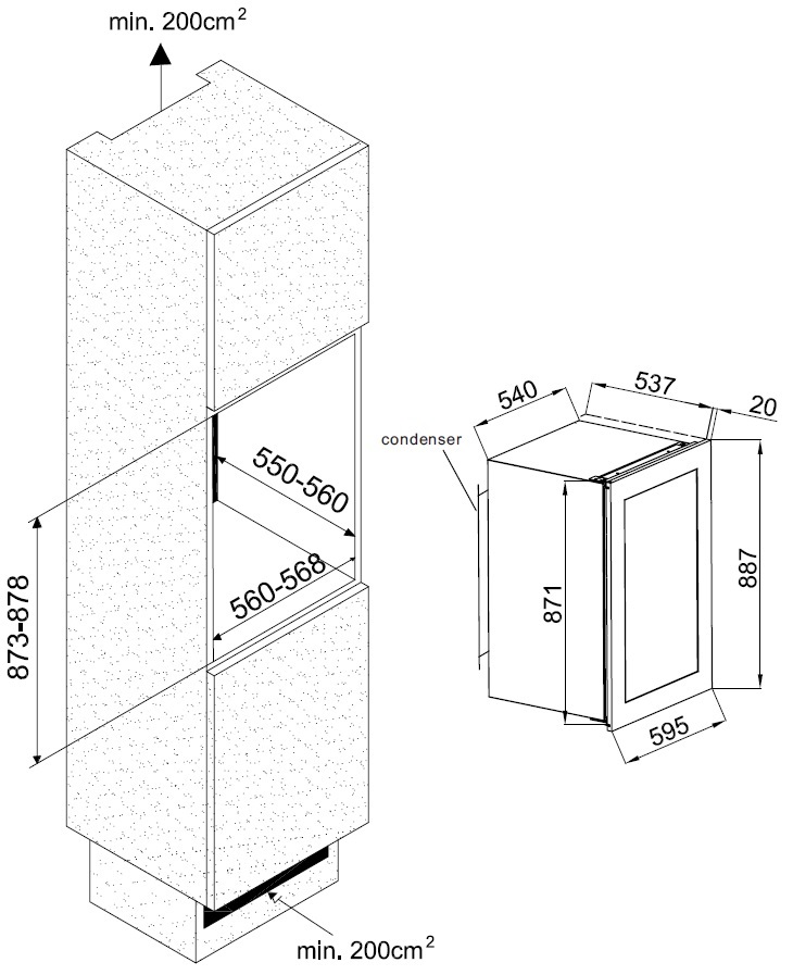 • Inbyggnadsmått: 56 x 87,8 x 55 cm
