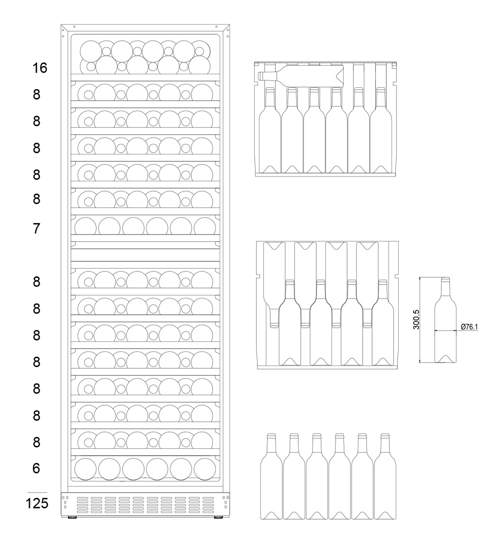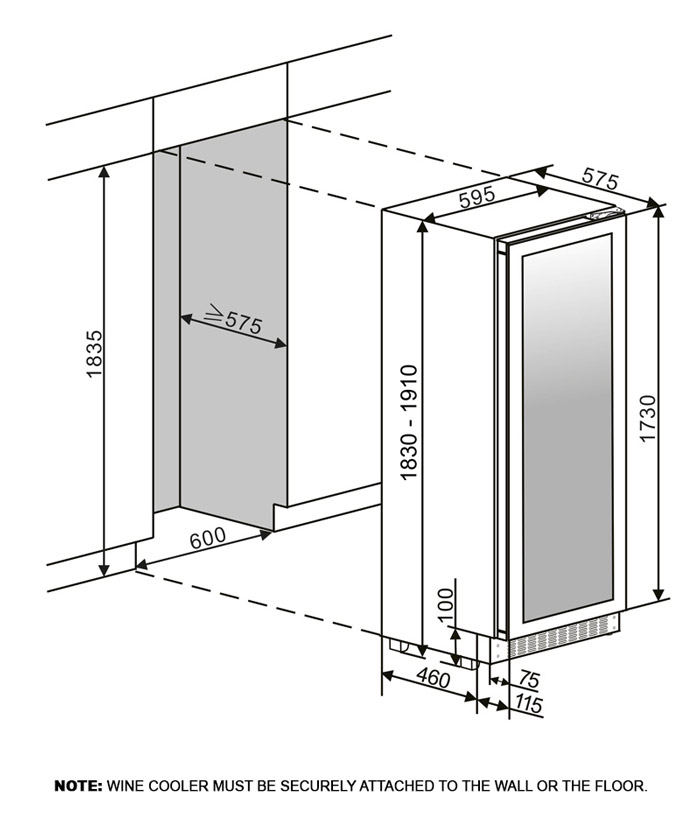 • OBS! Vid installation måste vinkylen fästas i vägg eller golv.