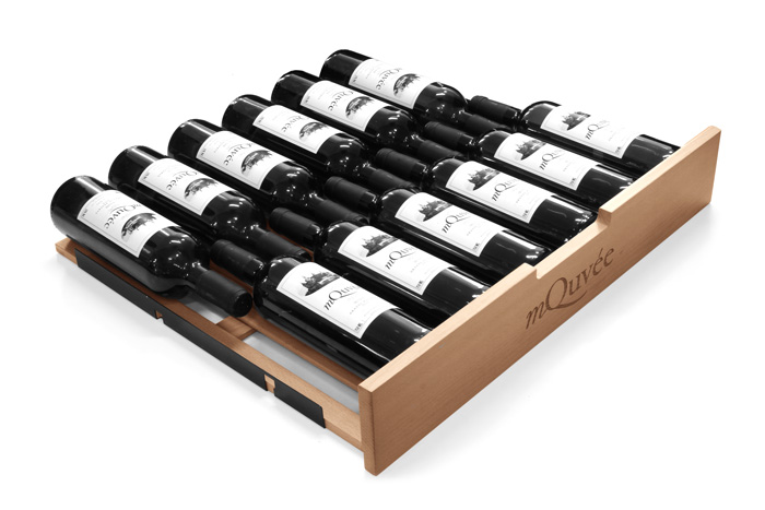 Modern och exklusiv trähylla från mQuvée. Hyllans display-inlägg ger dig möjligheten att presentera dina viner lutandes. På denna hylla får du plats med 20 flaskor.