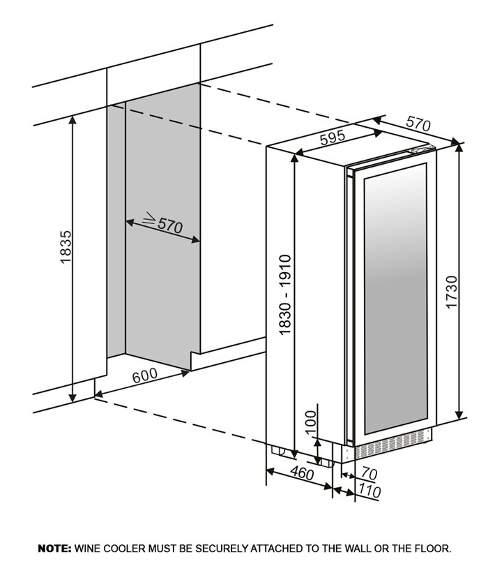 • OBS! Vid installation måste vinkylen fästas i vägg eller golv.