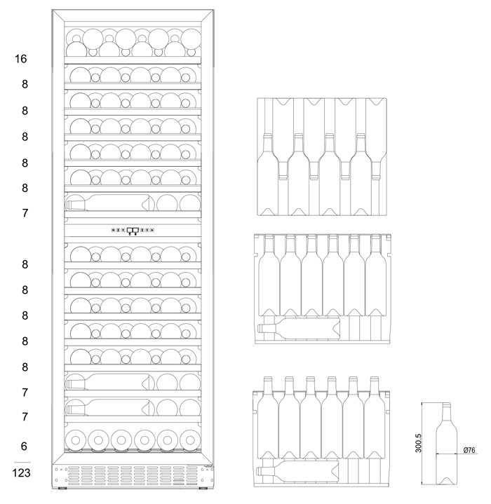 • OBS! Vid installation måste vinkylen fästas i vägg eller golv.