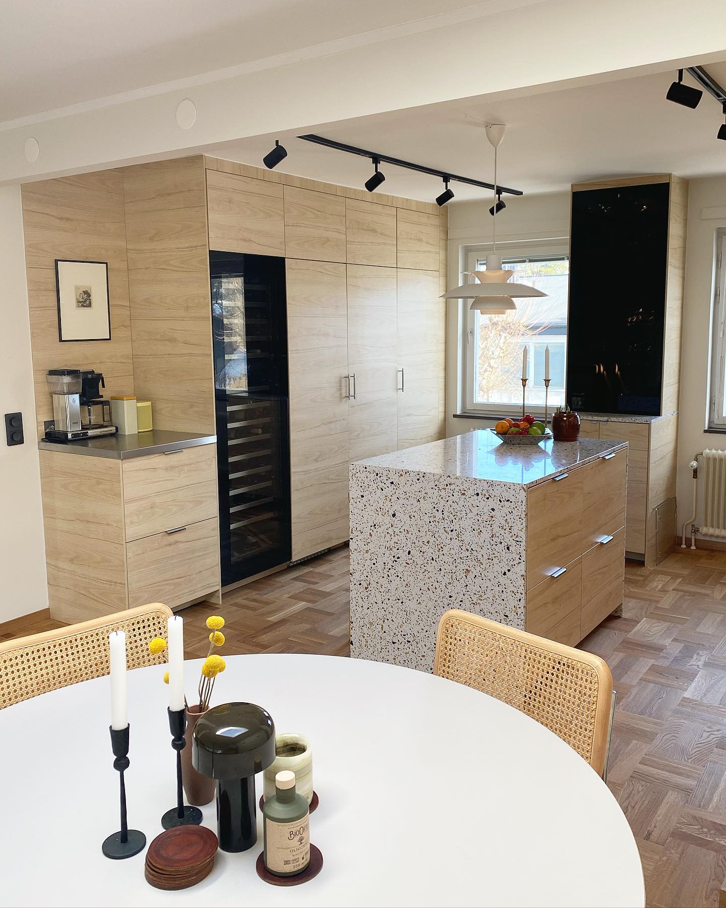 • 14 utdragbara hyllor och 1 displayhylla i trä med stålfront