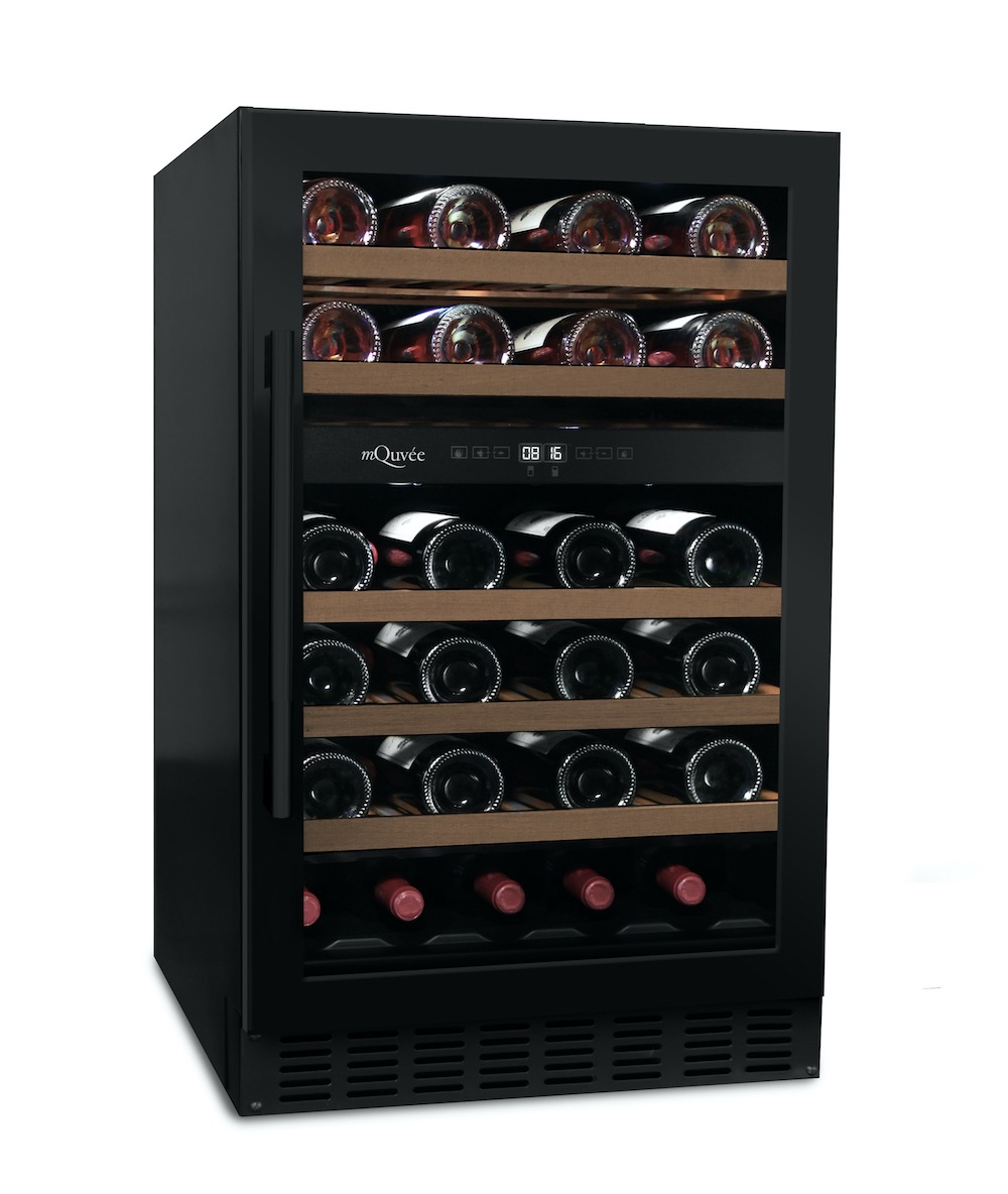 En tidlös mattsvart vinkyl från mQuvée som med sin bredd på 50 cm gör den helt unik på marknaden. Utmärkt att bygga in under köksbänken eller varför inte ha den som en fristående vinkyl. Med dess stilrena utseende och klassiska trähyllor får du en läcker detalj i ditt hem. Placera dina vinflaskor i kylen och förvara dem med stil!