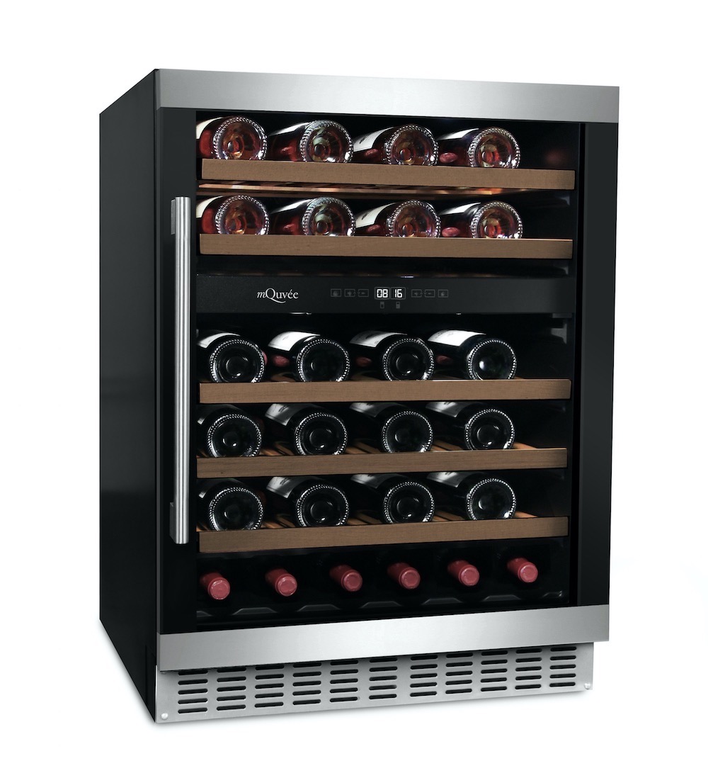 Snygg inbyggbar vinkyl från mQuvée som passar utmärkt i det moderna och skandinaviska hemmet. Vinkylen går enkelt att bygga in under köksbänken och kan även användas som fristående. Med en kombinerad dörr i både svart och rostfri finish från mQuvée, två temperaturzoner och en dörr utan skarvar får du en vinkyl som lyfter hela ditt kök. Vinkylen har energiklass F, kolfilter, 5 utdragbara trähyllor och plats till 45 flaskor.
